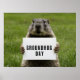 Groundhog Day Image: Groundhog Holding a White Card for Personalised Messages. Celebrate Groundhog Day with this charming illustration featuring a groundhog holding a blank white card.