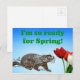 February 2nd may be the only day that American are glued to the actions of a rodent. After all, if groundhogs see their shadow we’re in for six more months of winter! Turns out, these groundhogs are waiting for spring too, as this cute new design shows. This customizable design features a drawing of a furry chocolate brown groundhog on a faded blue background with some lovely red and white spring tulips with the words “I am so ready for Spring” written above in a fun green font.