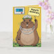 The is a generativecontent design. I looked up symbols for first anniversary and then used them in a design. The flowers on the head of the groundhog are supposed to be pansies. The necklace was supposed to be mother of pearl not pearls. And I changed the background color from blue to yellow. I thought since its a first anniversary cart that the clock should read 1:00pm.