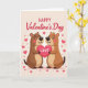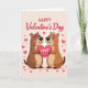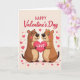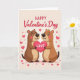 This greeting card shows two cute marmot-like animals standing side by side, with warm brown fur, rosy cheeks, and big smiles. Their eyes look bright and friendly as they hold a large pink heart together at the center. On the heart, the word “LOVE” appears in white letters, easy to read and placed right in the middle. Above them, the message “Happy Valentine’s Day” is written in red script across the top of the card. The background is a soft beige, which helps the pinks and reds stand out without feeling too busy. Small red hearts float around the pair, some filled in and some just outlined, adding a light, romantic touch. It’s a sweet design that feels perfect for a partner, friend, or anyone you care about ❤️💌🍫. Hope it helps you share kind Valentine’s Day feelings with someone special.