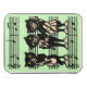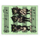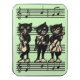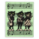 This acrylic jig saw puzzle has a group of three black cat musicians playing their music instruments while standing on a sheet of black music notes on a light green background.