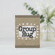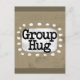 "Group Hug" is a cute text design in beige with black text, along with a white accent shape and white textured whimsical dots surrounding it.