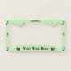 This license plate frame is light green with two groups of three black cat musicians playing their instruments at the bottom. The frame is accented with black music notes on each side and a bar of music notes at the top. Customize your text with the template.