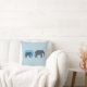Digitally created group of elephants. Two of them have the same size, one of them in a light blue, the other in a grey-blue colour. The third elephant is smaller and has a dark grey-blue colour. They are placed on a light blue background. You can easily change the colour of the background,