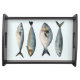 "Four Fish" by Emma Scarvey. Features four fish on a white background.