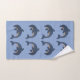 This set of bath towels that includes a wash towel, hand towel, and bath towel is light blue with a group of cute ocean dark blue dolphins with white stomachs that are in a jumping position. Purchase the whole set or individually.