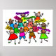 Cute cartoon whimsical illustration of a group of happy and diverse little boys and girls waving and smiling. Easily customize and choose your own background colour or add text. Image available on various gifts and products.