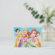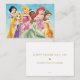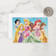 Sparkle and shine this Valentine's Day with this enchanting card featuring a stunning group of Disney Princesses! One side of the card displays a beautiful illustration of beloved princesses including Snow White, Rapunzel, Aurora, Tiana, Ariel, and Belle, all in their dazzling gowns and tiaras against a dreamy blue sky. The reverse side features a clean white background with "HAPPY VALENTINE'S DAY" in elegant gold lettering, and a customizable name below, accented with a shimmering gold heart. This card is perfect for any royal fan, offering a glamorous and personalized greeting from your little one!