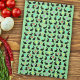 Group Spring Black Sitting Rabbits Flowers on Gree Kitchen Towel