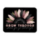 This design features a half sunflower image with the phrase "grow through what you go through" underneath. The text and font may be customized, and the image may be adjusted for size and placement.