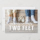 Share a cute photo of your shoes next to a pair of baby shoes with this adorable pregnancy announcement. Full bleed photo card features "our family is growing by two feet" as a white text overlay along the bottom. Personalize with your names and baby's expected arrival date beneath. Cards reverse to a neutral gray ikat pattern.