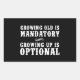 Growing Old Is Mandatory, Growing Up Is Optional Rectangular Sticker
