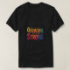 The t-shirt design features the phrase "Growing Strong" in a bold, colorful font. The text is printed in a variety of vibrant hues, creating a dynamic and eye-catching effect.
