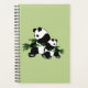 Panda mama sits eating bamboo while baby does as baby panda sees