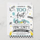Growing Up Too Fast Blue Race Car Birthday Party Invitation