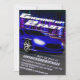 Start your engines and race to the finish line to celebrate your son's birthday. This unique invitation was digitally drawn to illustrate a very fast sports car on a night street racing contest with no one can catch up