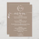 A simple chic foliage faux foil monogram grullo wedding menu card. Easy to personalize with your details. Modern boho wedding menu card editable, wreaths photo wedding invitation, customizable, calligraphy handwritten font, simple, elegant.