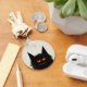 This is a minimalist coaster design with a flat illustration of a black grumpy cat. You can customize the text!
