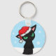 Grumpy Black Cat wearing Santa Hat Keychain
