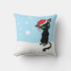 Grumpy Black Cat wearing Santa Hat Throw Pillow