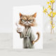 A hilariously grumpy cartoon cat stands in a robe holding a steaming cup of coffee, clearly not a morning fan. Its messy fur, intense glare, and overall “don’t talk to me yet” vibe make it a perfect visual mood for anyone before caffeine.
