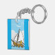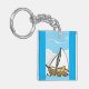 Grumpy Cat on a Sailboat Funny Nautical Cartoon Keychain
