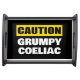 Coeliacs (Celiacs) can come across as pretty grumpy when they can't get gluten-free food. This fun serving tray features a caution warning design, and the words Grumpy Coeliac. You can change the text to suit.