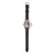 Has heft and feel of expensive stainless steel quartz watches. Good band with safety catch. I removed links, which is easy because engraved arrows show direction to push the linking pins. As always by this seller, the image (a railroad logo) is a perfect reproduction of my emailed image, and is precisely spaced and aligned.