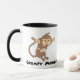 Coffee Mug with grumpy monkey sitting, arms crossed and tongue sticking out. Monkey's name is Petey and is the company mascott for Monkey Byte Development.