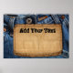 Grunge Blue Jean Denim & Leather Tag Custom Poster