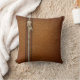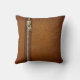 grunge bronze zipper brown stitched leather throw pillow