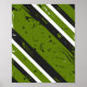 A bold abstract background featuring diagonal stripes in vivid green, deep black, and bright white. The stripes are layered with a grunge texture that includes scratches, distressed edges, and scattered paint splatters. Rough brush effects add movement and intensity, giving the design an energetic, edgy, and modern feel. The combination of sharp lines with chaotic textures creates a striking contrast that makes the artwork stand out.