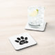 A cute cartoon style dog paw print and text with grunge and distressed effect applied to image. Custom beverage coasters with K9 theme. Gift idea.