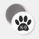 A cute cartoon style dog paw print and text with grunge and distressed effect applied to image. Custom magnets with K9 theme. Gift idea.
