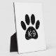 A cute cartoon style dog paw print and text with grunge and distressed effect applied to image. Custom plaques with K9 theme. Gift idea.