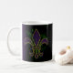 Grunge-style Mardi Gras design with fleur-de-lis, splatters, and splotches, and drips in purple, green, and yellow.