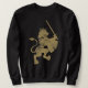 Grunge Lion King Men's Dark Sweatshirt. Lions are often symbols of power in European folklore. They were also used in medieval heraldry emblems, and used in the crests of royalty. This heraldic lion design is inspired by the lions depicted in medieval crests and coat of arms. The lion was also given a crown, a sword, and a shield to represent a king. A grunge effect was added for a "weathered" style.