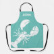 Cool teal blue apron printed with a grunged white lobster. Personalise by adding your own name or other text.