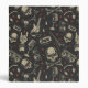 Grunge style skull, crossbones & various musical instruments on black background, seamless repeat pattern