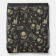 Grunge style skull, crossbones & various musical instruments on black background, seamless repeat pattern