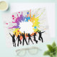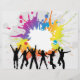 Grunge style party flyer with silhouettes of people dancing