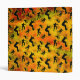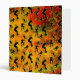 Grunge skateboarding binder featuring graphics composite of skateboarder silhouettes in a variety of trick positions on colorful orange red green grungy background by katz_d_zynes_sportz