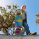 A colorful spray paint effect pattern in yellow, blue, red and purple.