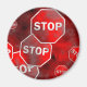 Red textured background illustration featuring a montage of road stop signs. Image available on various gifts and products.