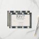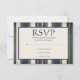 A modern navy blue and green grunge stripes Bar Mitzvah RSVP card. Easily personalize for your event.