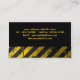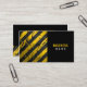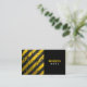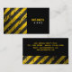 Business card with a yellow and black warning stripes design.