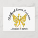 Captivate the attention of those around you as you deliver the important message of childhood cancer awareness with childhood cancer awareness t-shirts, apparel, gifts, and merchandise featuring a beautiful grunge butterfly, hand-drawn by a 35+ year professional tattoo artist / U.S. Marine veteran (thank you, Robert!), and a graffiti-style gold childhood cancer support ribbon. Add these elements to a very basic layout and you have the perfect blend of “distressed” and “simple” that is sure to provide an ideal backdrop for your commitment to making childhood cancer a disease of the past. As cancer survivors, survivor spouses, and avid awareness supporters we are pleased to contribute to numerous medical, animal, and Darfur charity organizations and ask that you think of us first for all of your childhood cancer awareness and childhood cancer support needs.