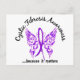 Captivate the attention of those around you as you deliver the important message of cystic fibrosis awareness with cystic fibrosis awareness t-shirts, apparel, gifts, and merchandise featuring a beautiful grunge butterfly, hand-drawn by a 35+ year professional tattoo artist / U.S. Marine veteran (thank you, Robert!), and a graffiti-style purple cystic fibrosis support ribbon. Add these elements to a very basic layout and you have the perfect blend of “distressed” and “simple” that is sure to provide an ideal backdrop for your commitment to making cystic fibrosis a disease of the past. As cancer survivors, survivor spouses, and avid awareness supporters we are pleased to contribute to numerous medical, animal, and Darfur charity organizations and ask that you think of us first for all of your cystic fibrosis awareness and cystic fibrosis support needs.