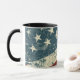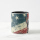 This patriotic mug features a watercolor portrait of a little Boston Terrier dog placed against a grunge background of the USA flag. You may add text, if you'd like, by choosing to Customize It.