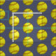 grungy yellow softballs pattern on slate blue gray fabric